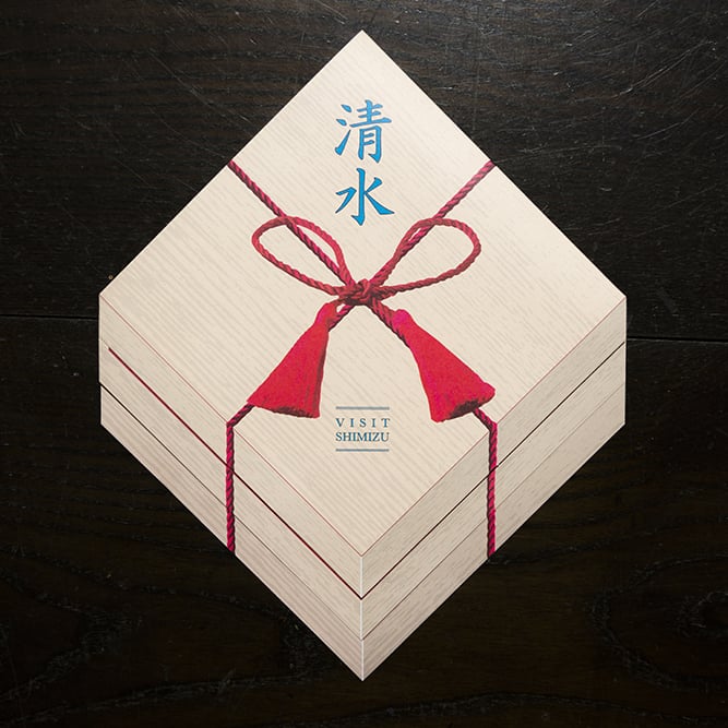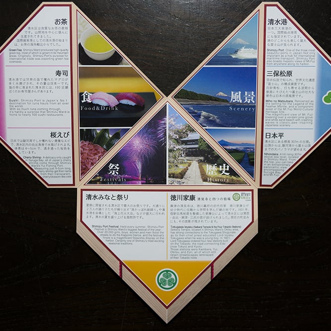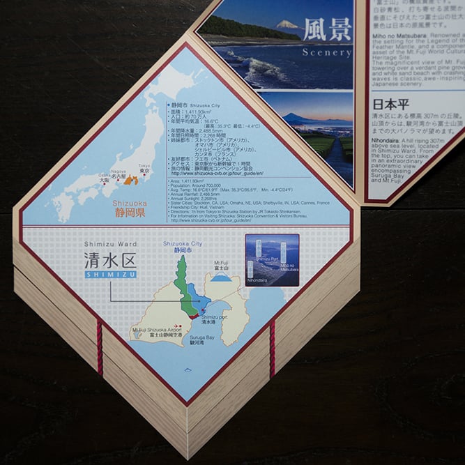 静岡市清水区からの依頼で制作した、清水区の情報をまとめたカードとナプキン富士のセット。