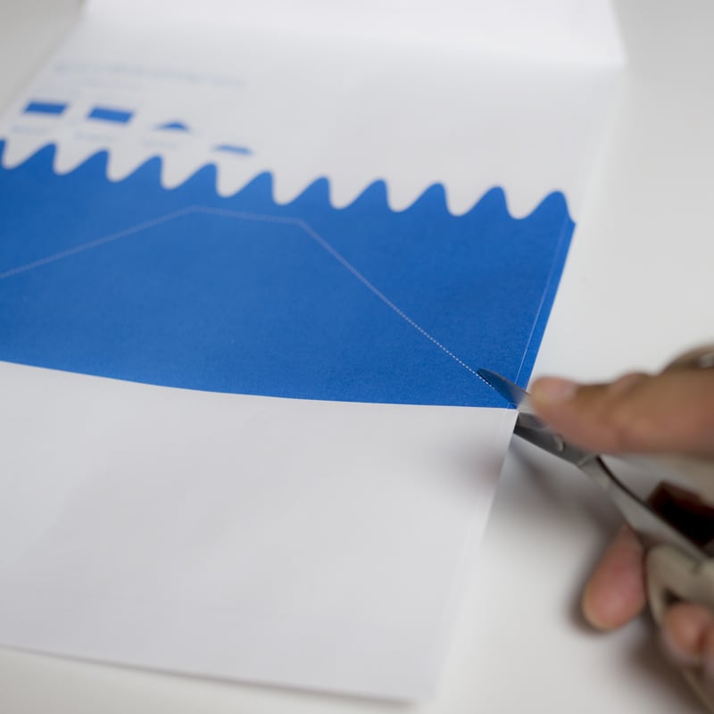 角2封筒はハサミで切り込むことで、富士山の封筒としてリユースすることができます。
