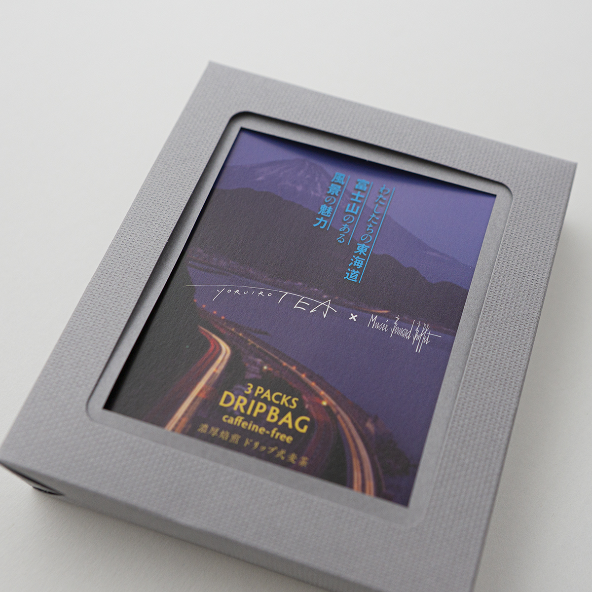 ノンカフェインということで、夜に飲むことをイメージし「ヨルイロティー」と名付けられた商品のパッケージには、フォトフレームのように夜の写真を使用。販売するお店に合わせて、オリジナルのパッケージ仕立てることができるように設計されている。